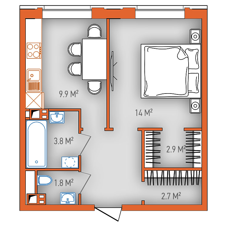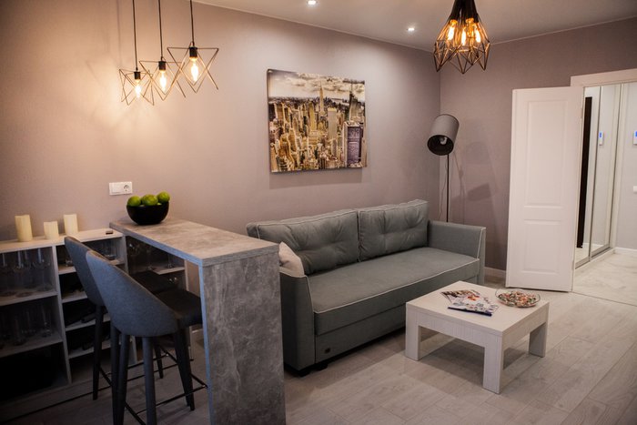 На продажу выставлены готовые однокомнатные (45 кв. м, цена 1 кв. м от 800 у.е.*) и двухкомнатные квартиры (62, 64 и 66 кв. м, цена 1 кв. м от 750 у.е.*). Также застройщик готов предоставить рассрочку на срок от 3 месяцев до 3 лет.