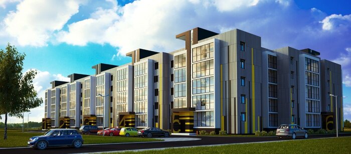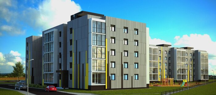 Новостройка будет иметь современный вентилируемый фасад из линеарных панелей. Материал не подвержен влиянию погодных явлений, устойчив к температурным перепадам, не выгорает на солнце. В любой сезон дом будет выглядеть красиво и опрятно.