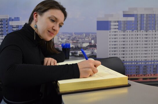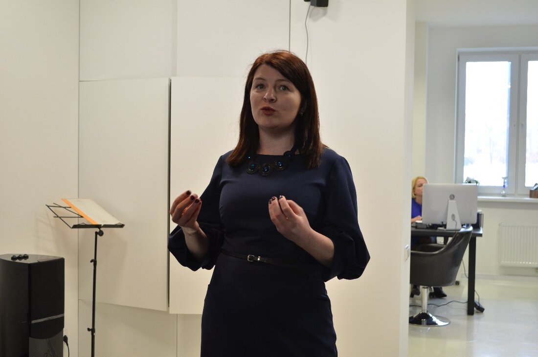 Знакомство гостей с новым офисом продолжила начальник отдела маркетинга и дизайна Новицкая Марина.