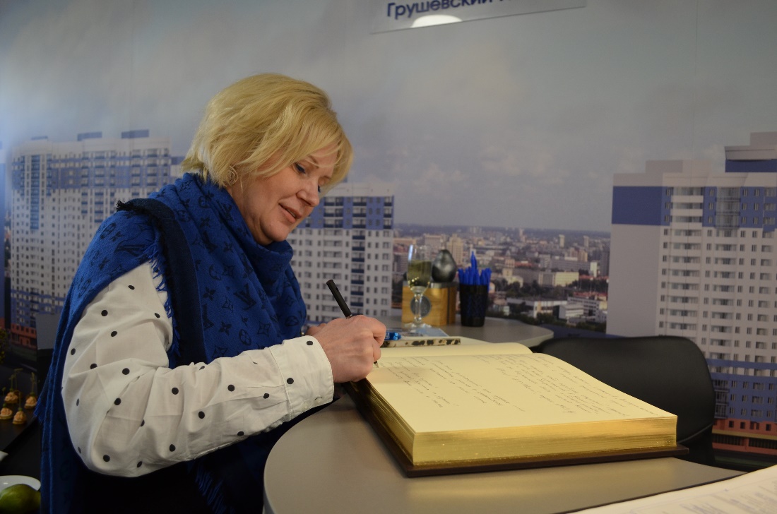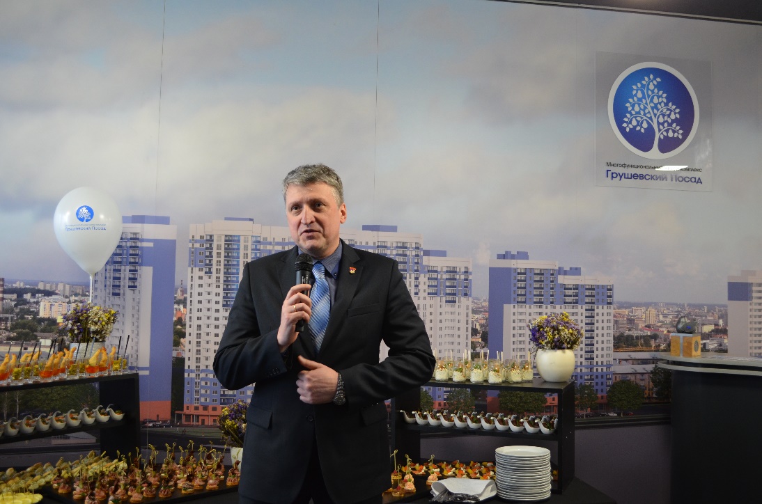 — зона приветствия с большим макетом уже свершившейся и в дальнейшем планируемой перспективной застройки Грушевского посада.