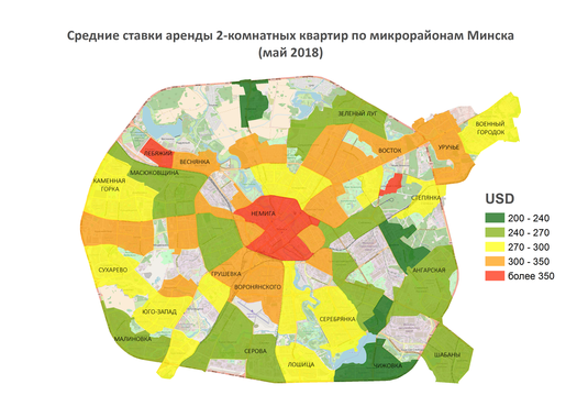 География арендных ставок в мае 2018 года выглядела следующим образом: