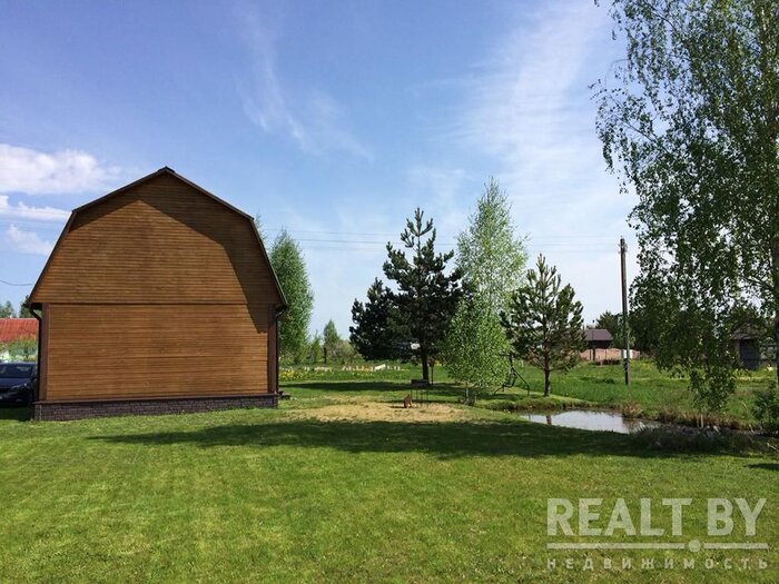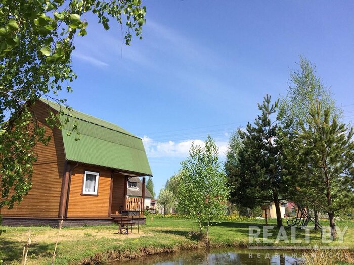 На продажу выставлена дача с собственным прудом в 40 километрах от МКАД. Объект введен в эксплуатацию в 2015 году. Дом двухуровневый, общей площадью 60 квадратных метров. Фундамент свайный, стены — профилированный брус 140 мм, кровля — еврошифер, на окнах стеклопакеты ПВХ, дверь металлическая. Дом с отделкой и меблирован, готов для проживания. Из коммуникаций есть электричество, вода сезонная, на границе участка колодец с питьевой водой, с/у на улице.