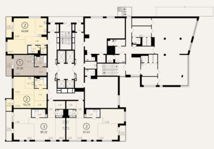 Большая часть из 165 квартир — 1-, 2-, 3-комнатные евроквартиры со свободной планировкой и просторными лоджиями: от 3,5 до 9,5 квадратного метра. Высота потолков составит 3 метра. Минимальная площадь квартиры — «однушка» на 35 «квадратов». На 2 верхних этажах — 22-м и 23-м — находятся 4- и 5-комнатные евроквартиры площадью до 148 квадратных метров со свободной планировкой, где объединят кухню и гостиную. В «А-100» полагают, что эти просторные квартиры заинтересуют большие семьи. Навигацию подъезда девелопер обещает удобную и понятную.