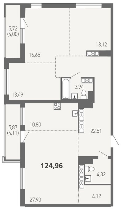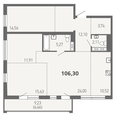 Верхние этажи (22-й и 23-й) дома № 4 Квартал-парка практически полностью отданы под 4- и 5-комнатные квартиры. К примеру, «четырёшка» на 106,30 квадратного метра оценена девелопером в $ 137 800, что составляет $ 1296 за «квадрат».