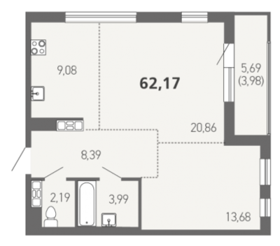 На всех этажах, кроме верхних двух, в доме № 4 запроектированы и 2-комнатные квартиры площадью от 50,06 до 62,17 квадратного метра. Их стоимость — от $ 60 500 до $ 74 400. Цена квадратного метра для «двушек» находится в диапазоне $ 1209 — 1197.