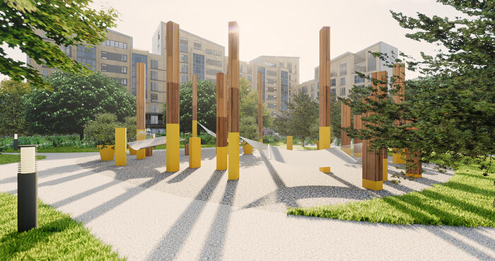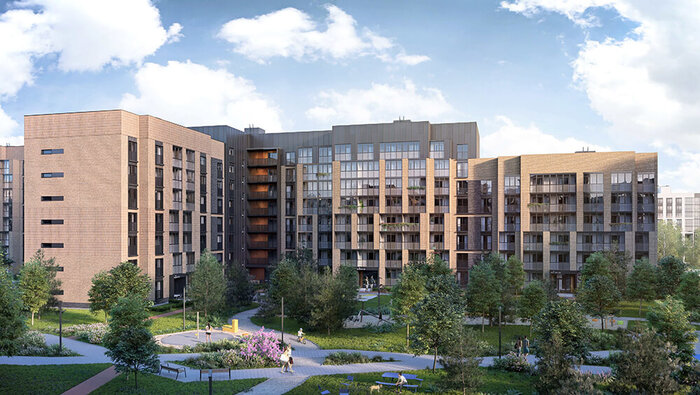 Ранее компания «А-100» презентовала концепцию, архитектурный стиль и дизайн Квартал-парка. Внешний вид домов вдохновлён архитектурой постиндустриальной Англии: кирпичная фактура стен с антрацитовым металлом в различных элементах фасада. Английскую сдержанность фасадов дополнят яркие акцентные элементы внутри подъездов, на балконах и в парке.