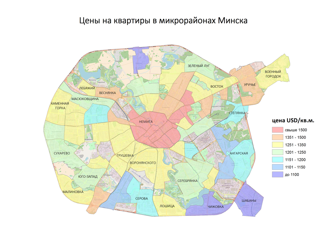 Изменение цен в районах Минска на 1 октября выглядит следующим образом: