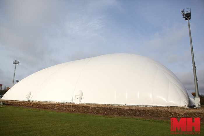 Тренировки в новом футбольном манеже начнут уже в конце октября — начале ноября, рассказал руководитель пресс-службы БФФ Александр Алейник. Поле в манеже накрыли специальным воздухоопорным сооружением, а условия позволят тренироваться в холодное время года: