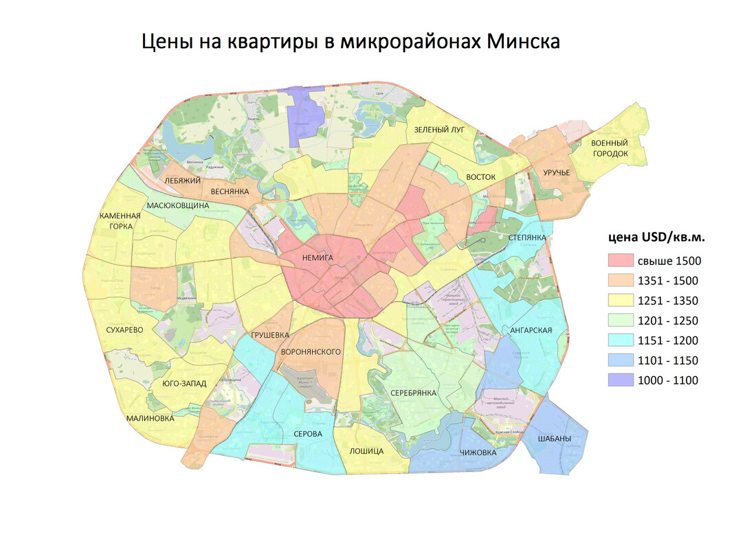 Изменение цен в районах Минска на 17 декабря выглядит следующим образом: