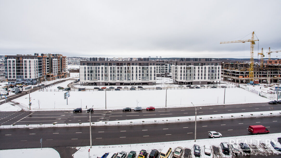 «Маяк Минска» — пожалуй, одна из самых известных строек столицы. Застройщик Dana Holdings пришел на белорусский рынок с уникальным тогда проектом города в городе. Первые рендеры включали в себя искусственные реки с курсирующими гондолами по примеру Венеции. Позже проект был изменен на более лаконичный и простой.