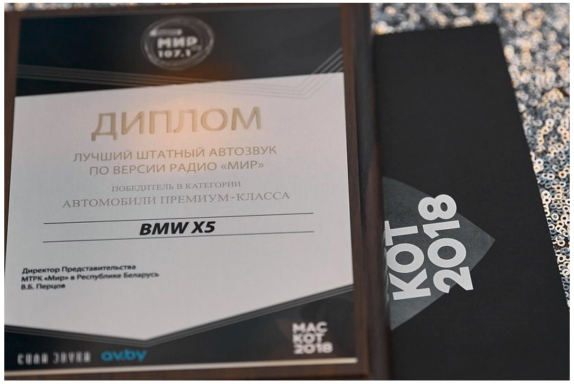 И, наконец, на церемонии были объявлены фавориты в специальной номинации «Лучший штатный автозвук» по версии радио «Мир». В классе доступных автомобилей лучшим назвали Ford Focus, в среднем классе этого звания удостоился Kia Sportage, а в премиум-сегменте слушатели проголосовали за BMW X5 как за автомобиль с самой крутой штатной музыкой.