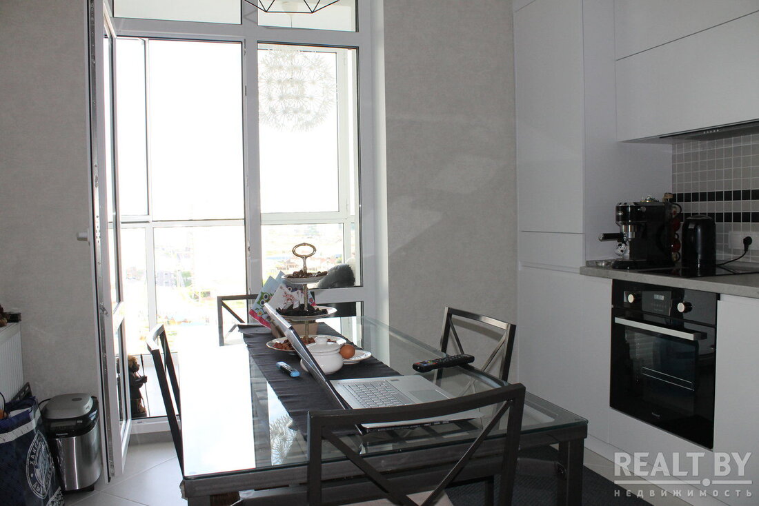 «Высокие потолки 2,7 м, гардероб, два санузла, лоджия из кухни, встроенная кухня с техникой. Вид на Национальную библиотеку», — говорится в объявлении.