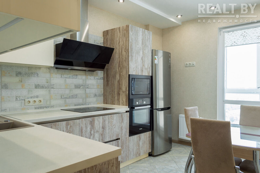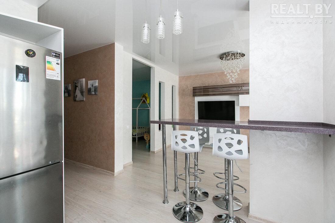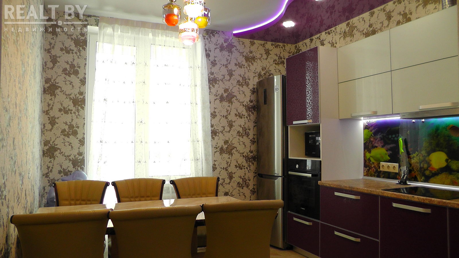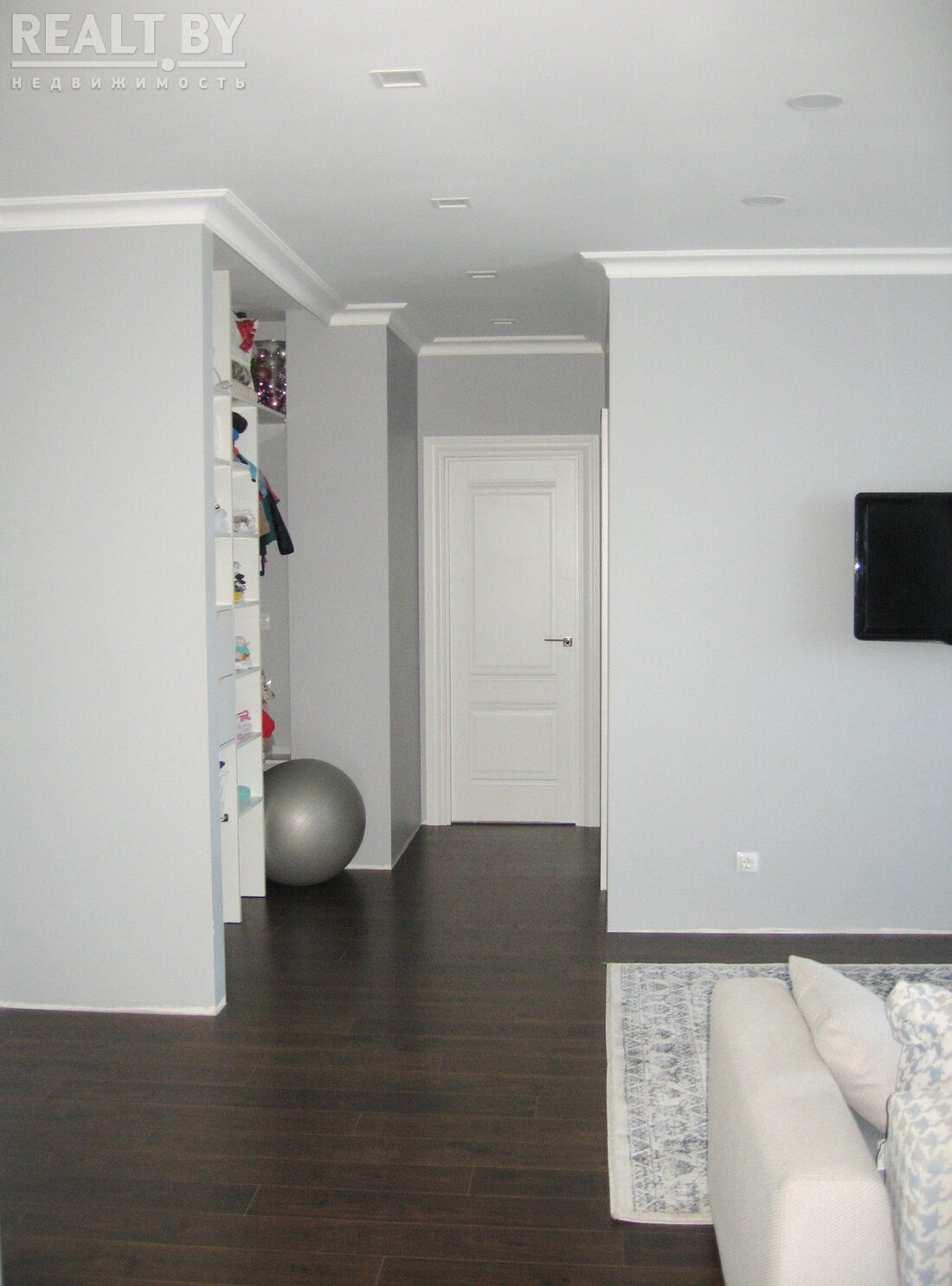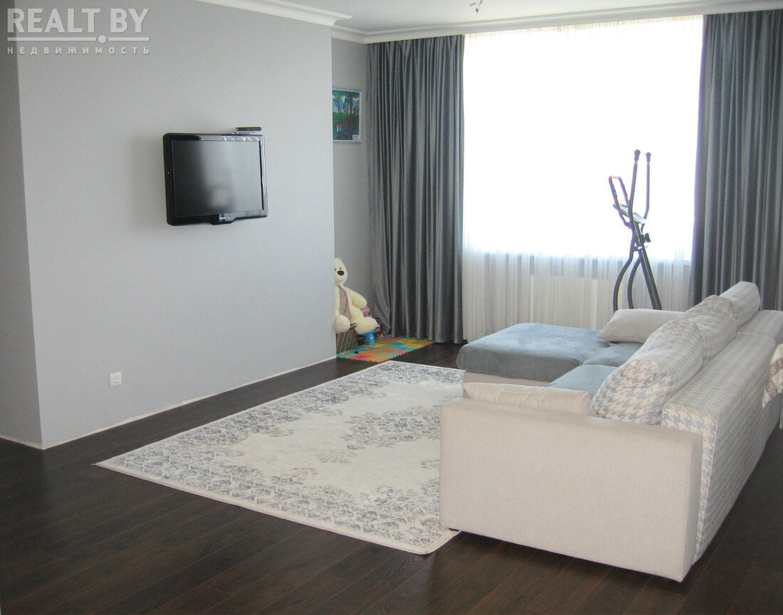 «Трешка» продается на 16-м этаже этого же дома (ул. Ратомская, 7). Квартира площадью в 100,9 кв. м состоит из гостино-столовой зоны, просторной прихожей, спальной и детской.