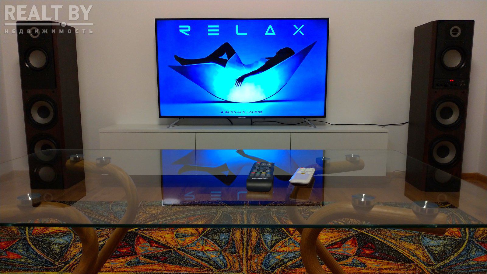 «Удобная двуспальная кровать с подъёмным механизмом и ортопедическим матрасом, раскладной диван. Телевизор 50 дюймов с Wi-Fi и смарт тв. Трехполосная акустическая система. Большая ванна, душевая система с тропическим душем, псевдобиде, бойлер на случай отключения горячей воды, стиральная машина. Увлажнитель и ионизатор воздуха. Индукционная плита. Холодильник, не требующий разморозки, полный no frost», — пишет продавец.