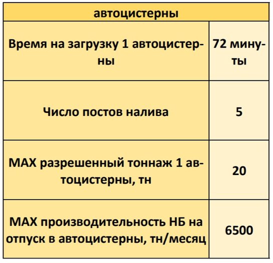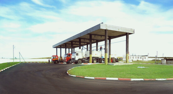 Двухсторонняя автоэстакада для налива нефтепродуктов рассчитана на три вида топлива и одновременно может принимать 5 автомобильных цистерн. Общая производительность налива автоцистерн составляет 250 м³ в день.