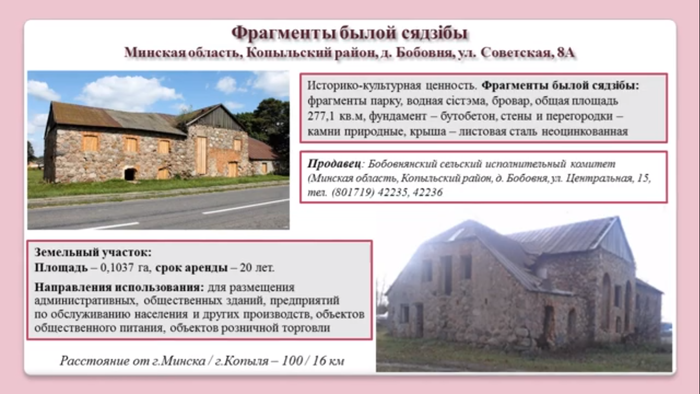 Среди объектов, которые выставили на продажу, есть здание, которое представляет историко-культурную ценность. Постройка из природного камня имеет площадь в 277 кв.м. Находится в 100 км от Минска.