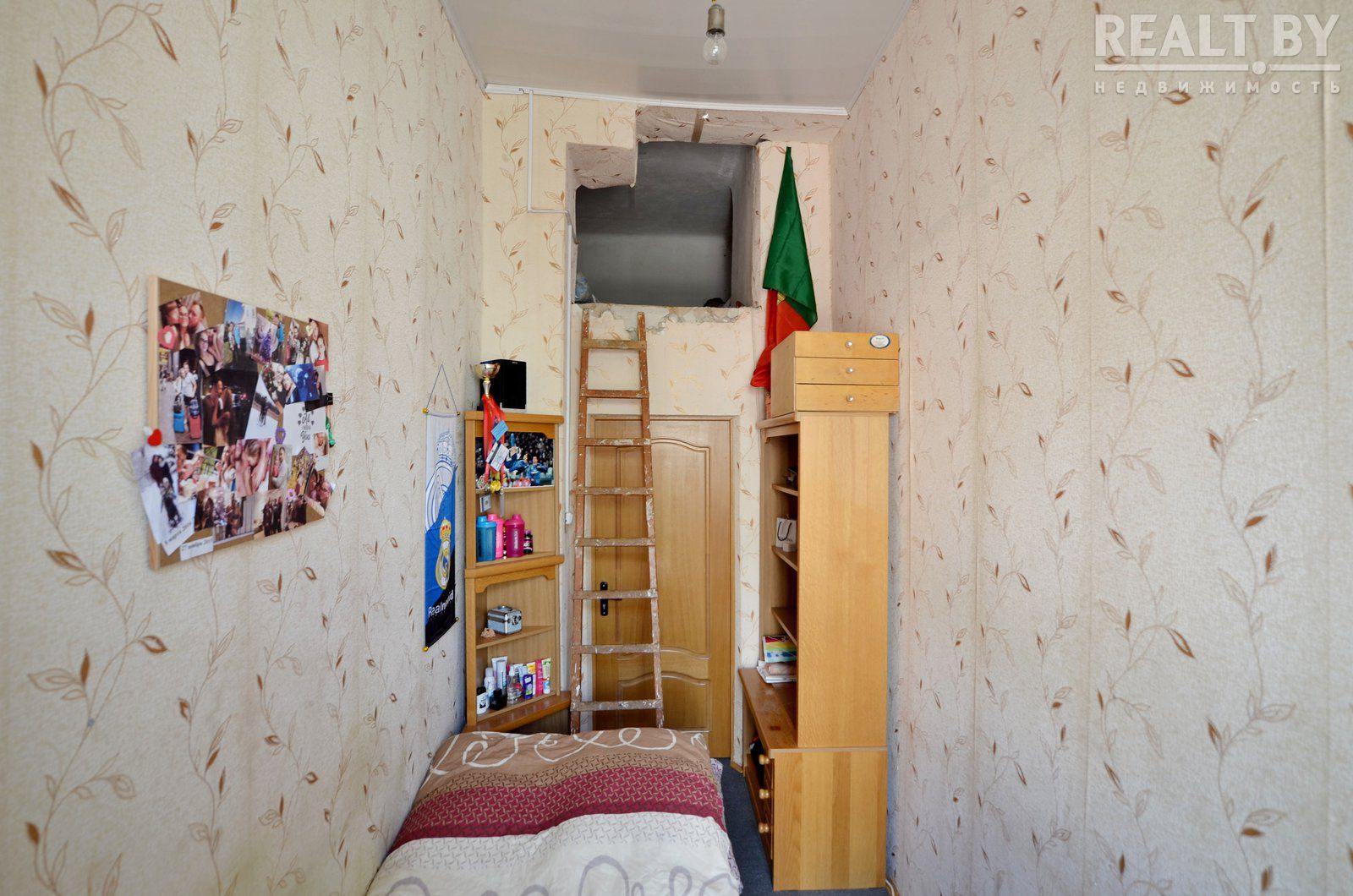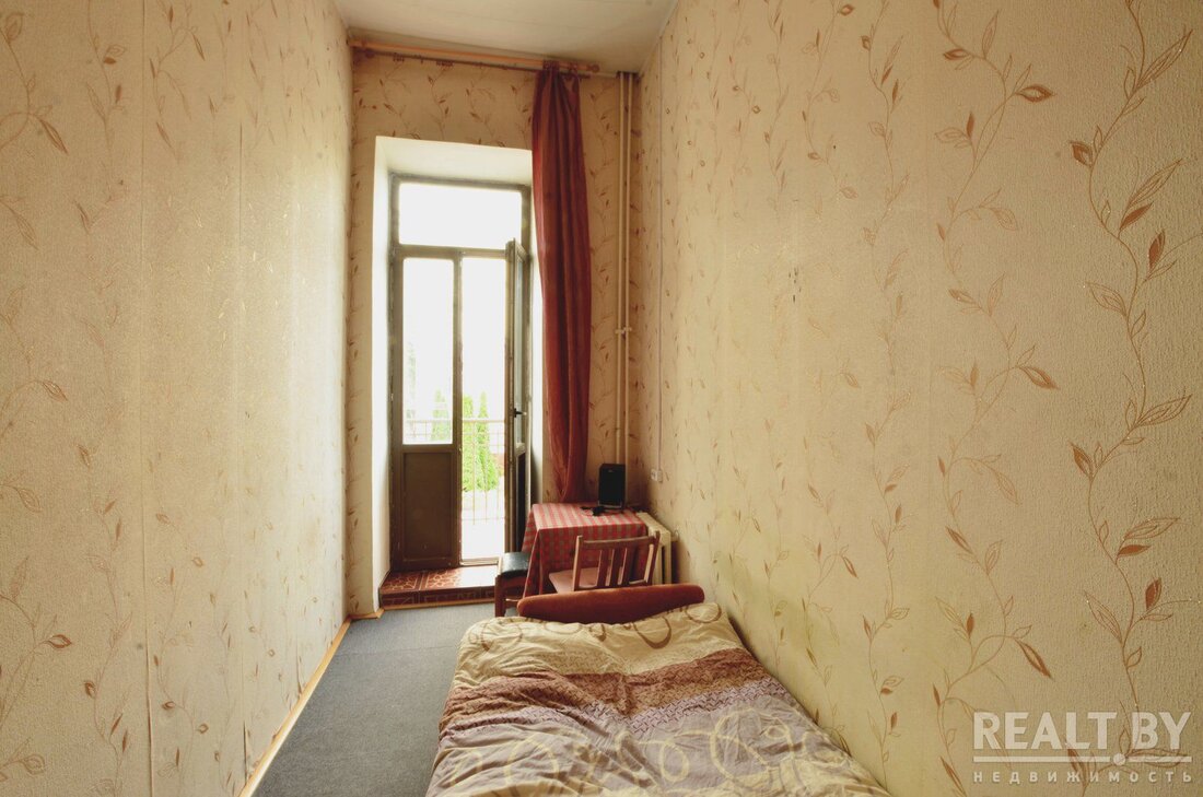 В Минске по улице Володарского в доме, который был построен в 1917 году по индивидуальному проекту, можно купить трехкомнатную квартиру с потайной комнатой под потолком.