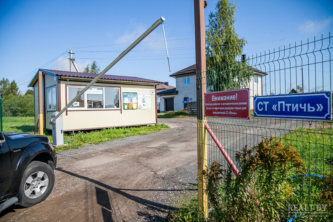 СТ «Птичь», по сути, уже не совсем садовое товарищество — это маскирующийся под него коттеджный поселок. Терпимые дороги внутри, просторные участки, есть газ, централизованное водоснабжение от собственной скважины, оптоволокно от Белтелекома. Так что тут уже стоят или еще строятся коттеджи.