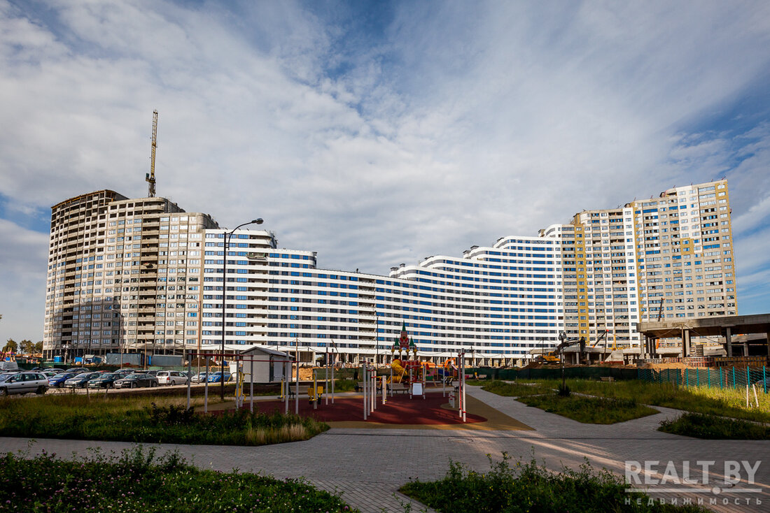 Возле Марин можно встретить множество нанятых строителей, которые занимаются отделкой квартир, а также немало жителей этих домов, которые уже успели сделать ремонт и заселиться. Между Мариной 3 и Мариной 2 встречаем Елену, которая в майке перебегает из одного дома в другой.