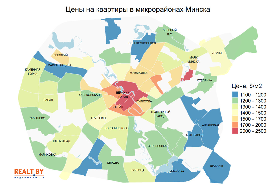 Изменение цен в районах Минска на 7 октября выглядит следующим образом: