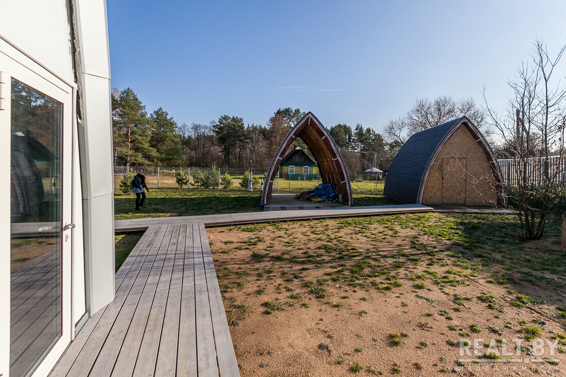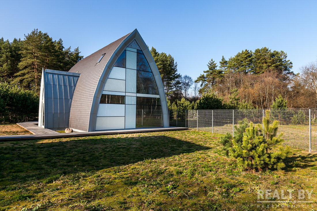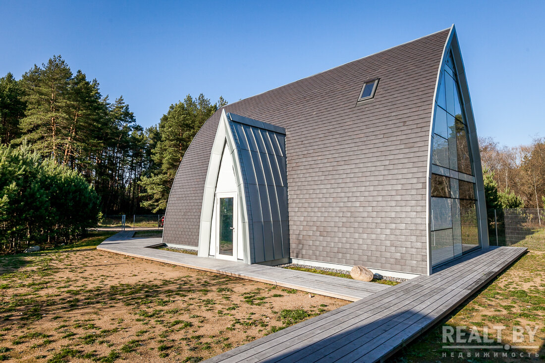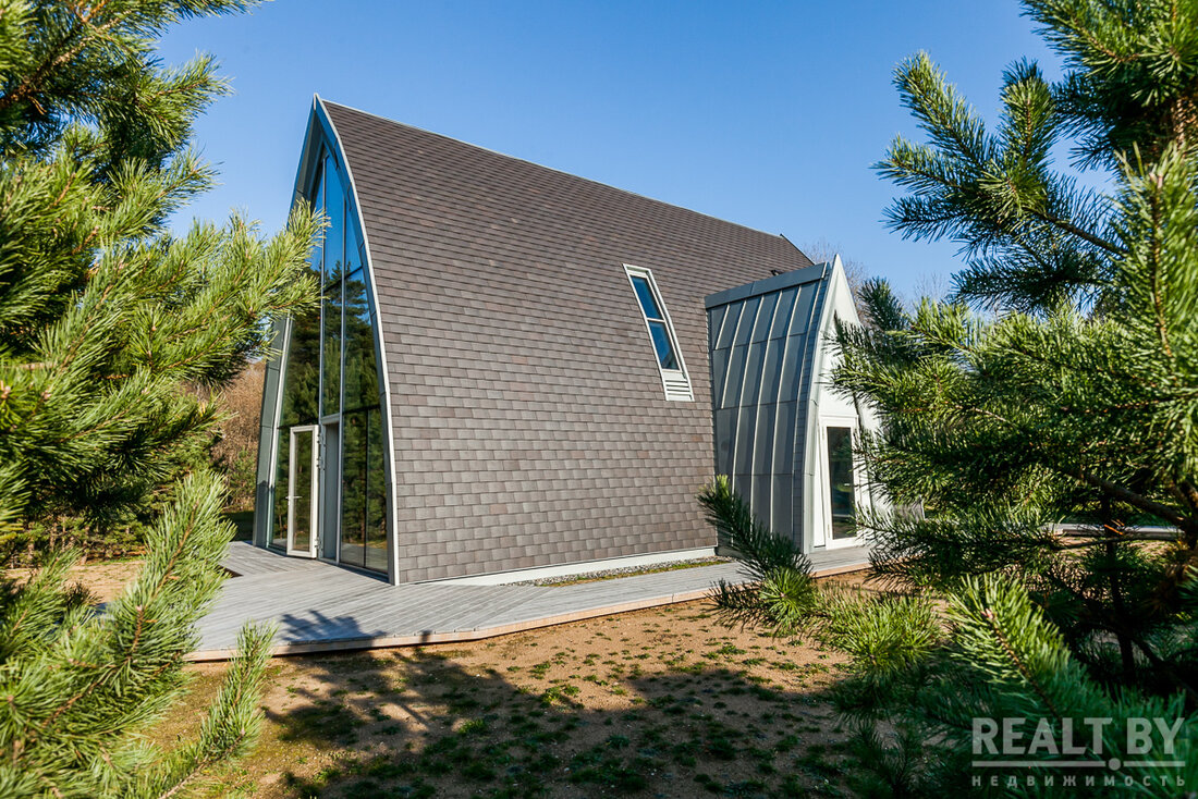 Дом объективно отличается от всех соседних. Такой дизайн не ожидаешь встретить в Беларуси, и не очень понятно, на сколько жильцов он рассчитан.