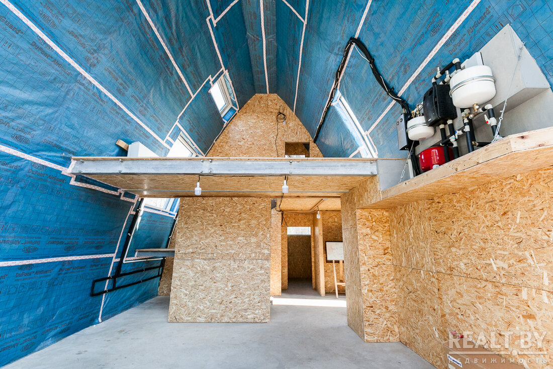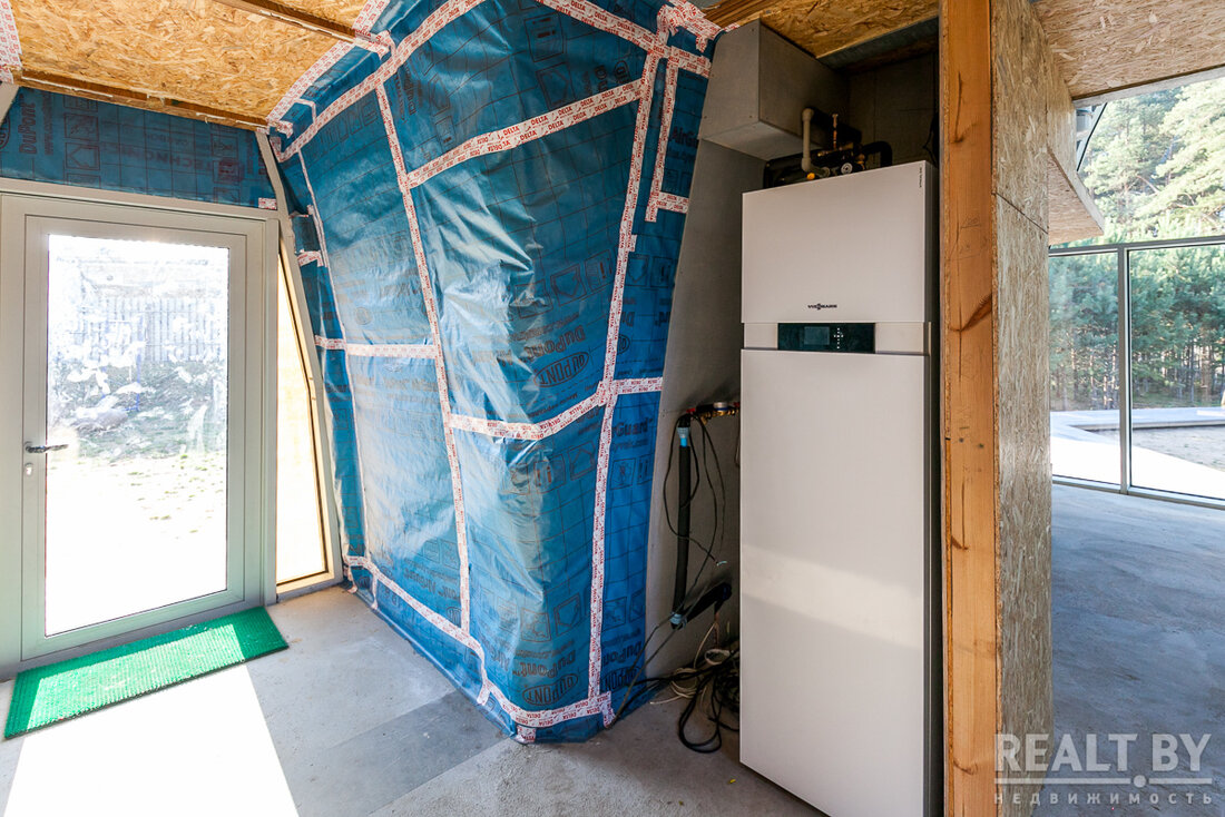 — Что касается отделки комнат, то здесь я уже остановился, т.к. дизайном интерьера, как правило, предпочитают заниматься сами жильцы, — ответил Дмитрий. — Для кого-то $ 230 тысяч за дом без отделки — это дорого. Но те, кто понимает, сколько средств вложено в этот проект, таких вопросов не задают. Только одних окон здесь на $ 40 тысяч. Оборудование также здесь стоит самое лучшее. Например, тепловой насос стоит 30 тысяч евро. Поэтому технологии, которые здесь использованы, не могут оцениваться дешево. Один фундамент — утепленная шведская плита — стоит $ 25 тысяч.