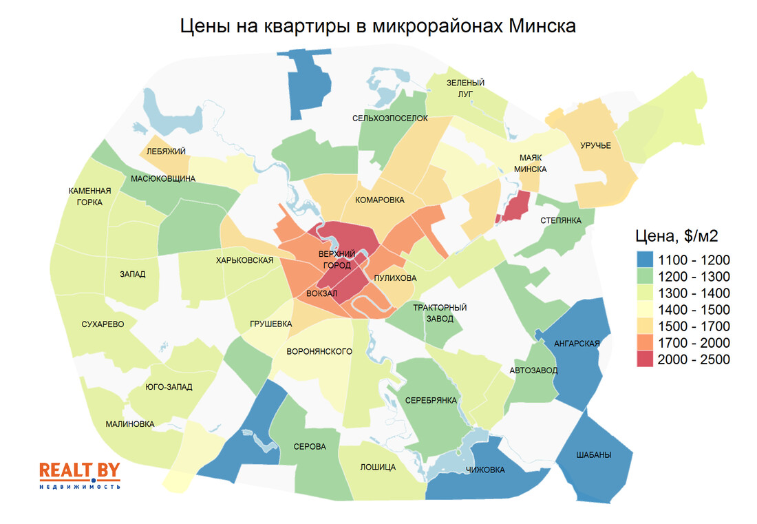 Изменение цен в районах Минска на 2 декабря выглядит следующим образом: