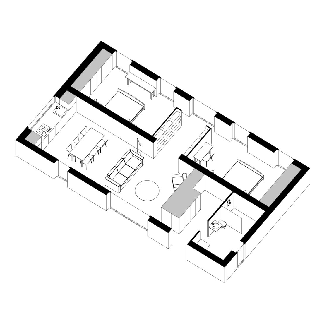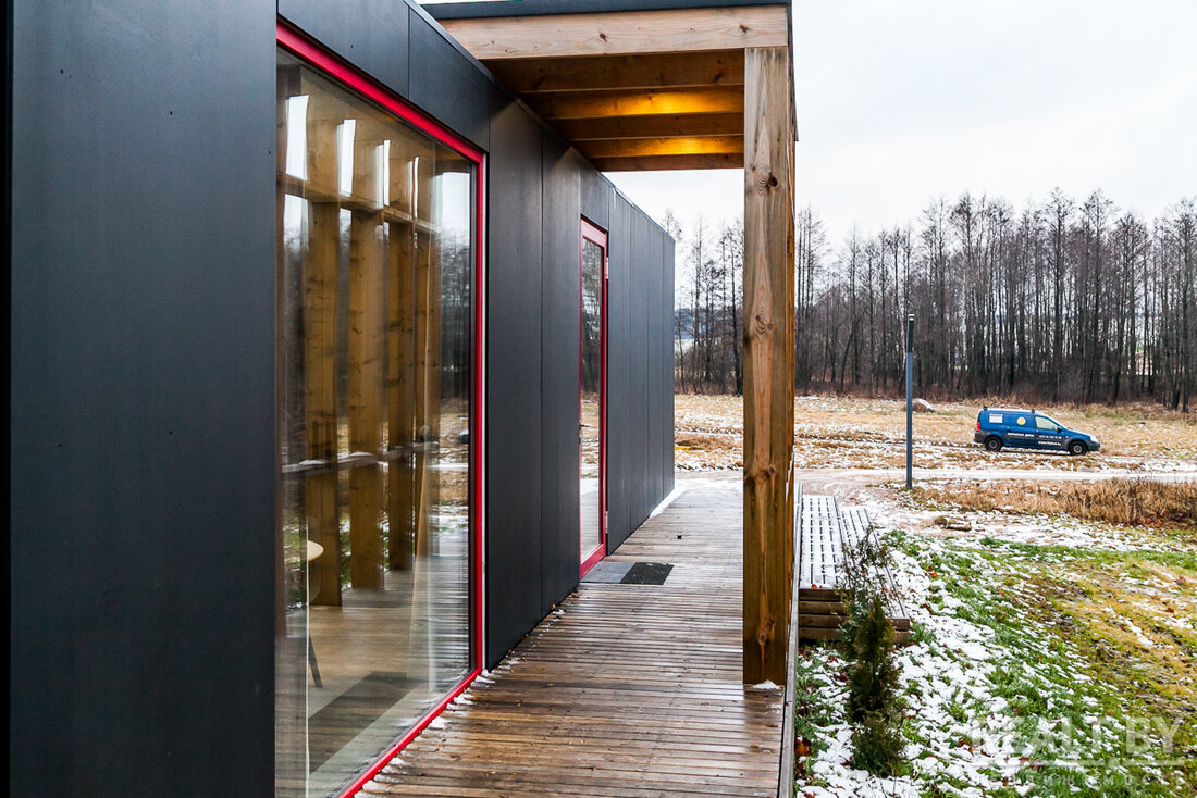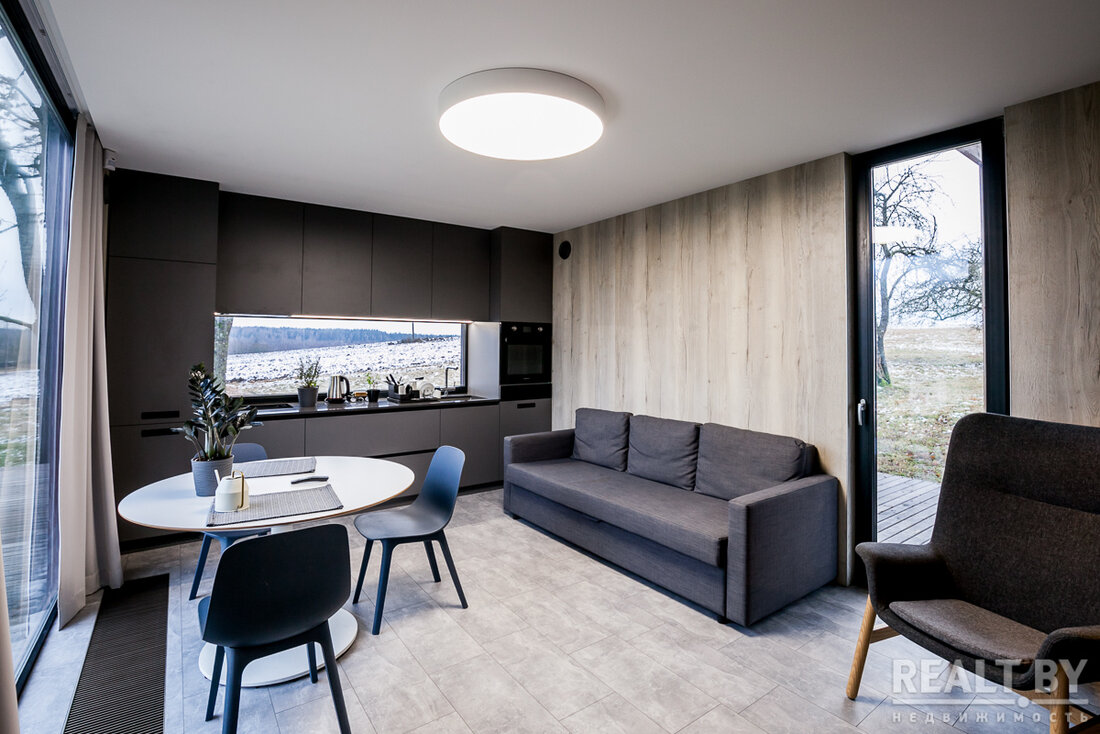 — Мы задумались, что если бы мы смогли локализовать процесс производства в одном месте, то это было бы куда эффективнее. Но возник другой момент: получается, что нам на участок нужно перевозить уже не отдельные панели (стены, пол, крышу), а дом в сборе, — делится Максим. — Когда родилась такая идея, то мы сразу начали думать о том, чтобы привозить дома в сборе со всей мебелью, отделкой, сантехникой и всем-всем-всем внутри. Потому что собрать чисто коробку без окон и дверей в цеху или на участке займет одно и то же время. Поэтому начали думать над тем, чтобы привозить уже полностью готовый к проживанию дом, с которым практически ничего не нужно было делать на участке заказчика. Ну разве что столы и стулья расставить, коммуникации подключить и закинуть дрова в камин. И вот такой дом будет одним модулем. Мы придумали ему название Flybird Wagon.