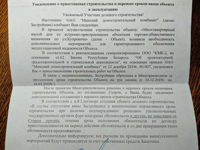 — Еще 15 декабря было ясно, что дом не будет достроен в срок. Потому что к этому времени даже еще не все окна были поставлены — о каком вводе в эксплуатацию может идти речь? Только через несколько дней после официальной даты ввода в эксплуатацию стали приходить всем заказные письма о необходимости проведения экспертизы.