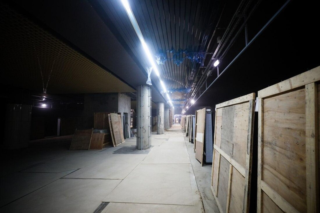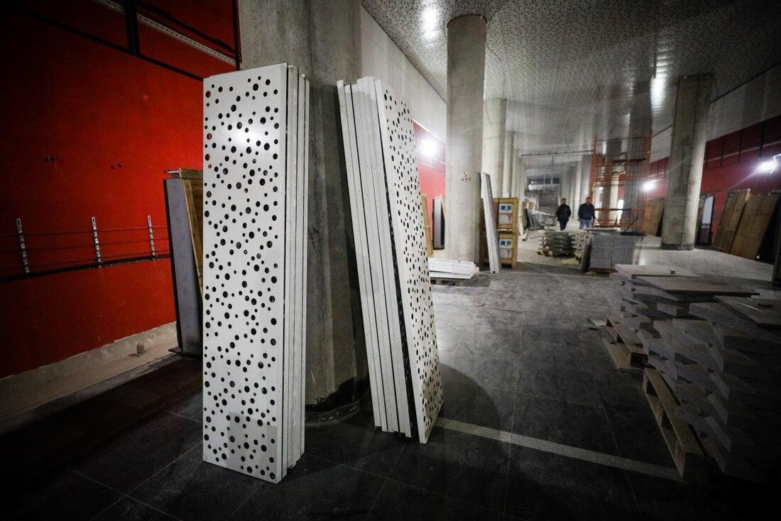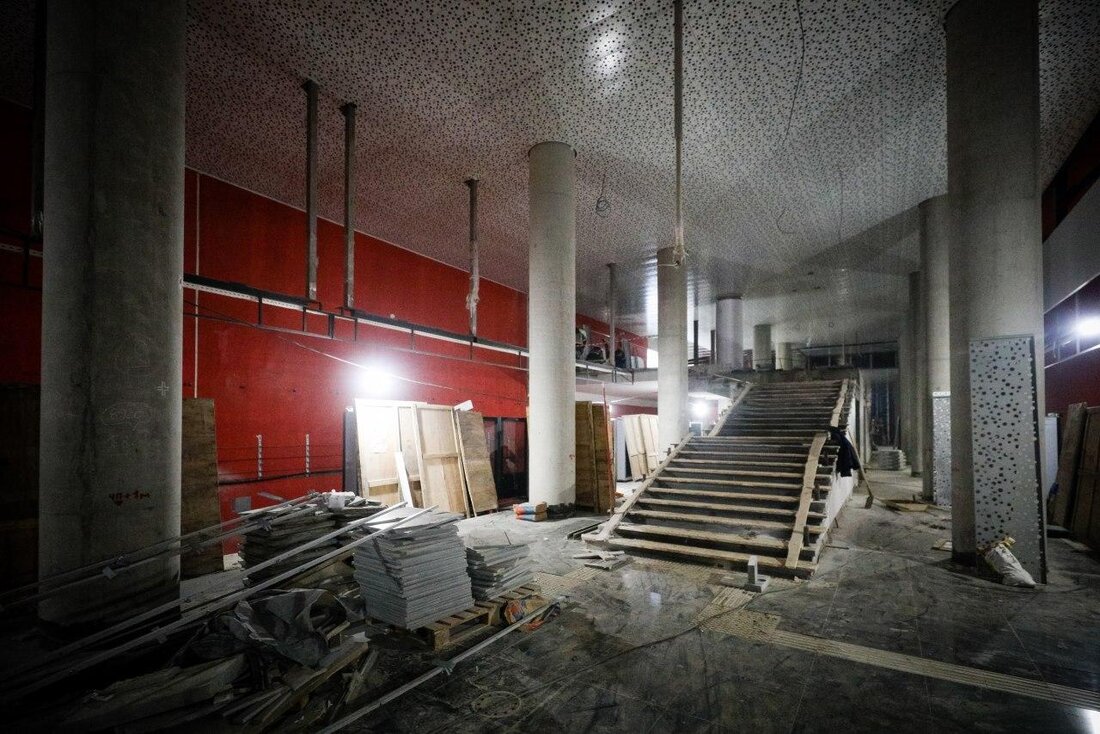 Здесь уже завершены отделочные работы. Сейчас рабочие занимаются художественным оформлением и наладкой систем безопасности, видеонаблюдения.