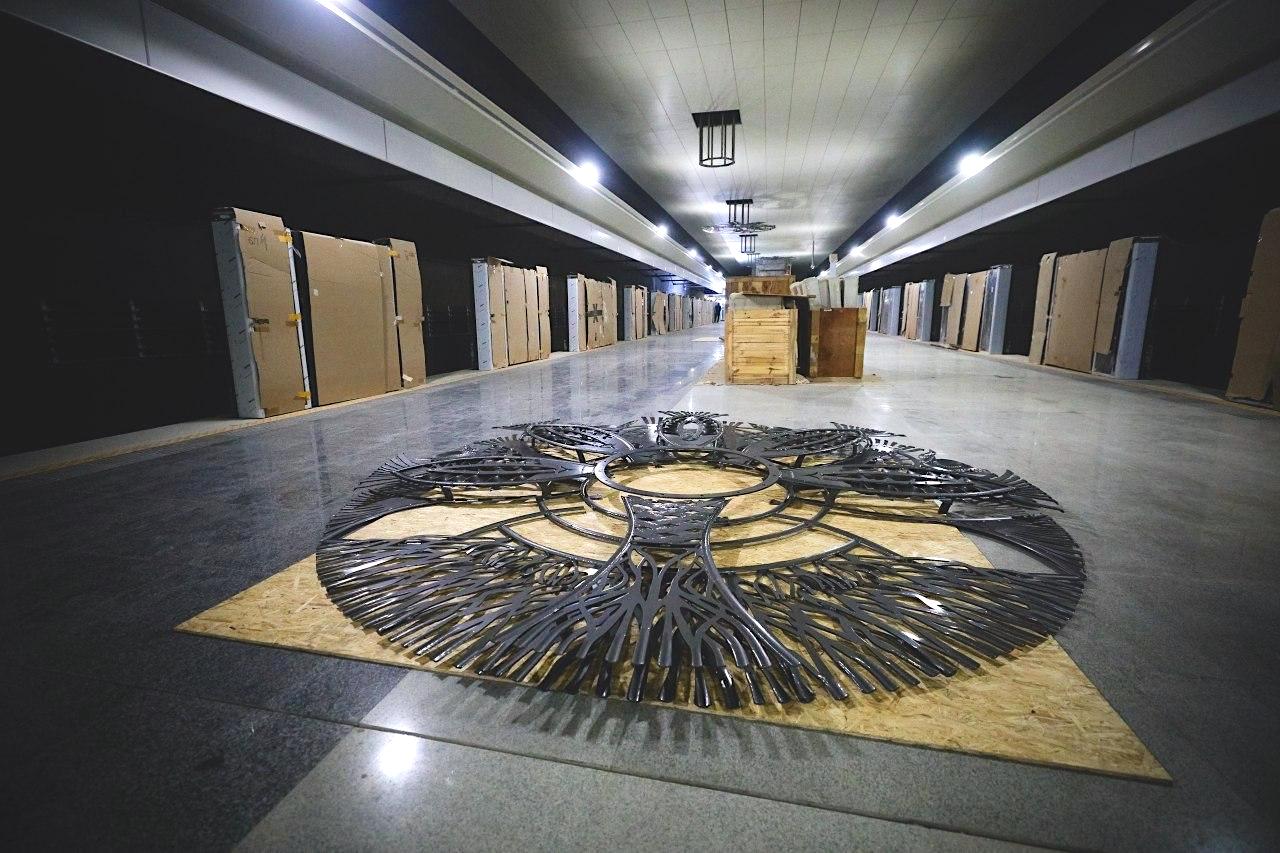 В вестибюле и над платформой установят декоративные кованные розетки. Их расположат асимметрично оси станции. Гранит на платформе тоже выложен в стиле асимметрии. Это, кстати, главное отличие «Ковальской Слободы» от остальных станций, где придерживались симметрии.