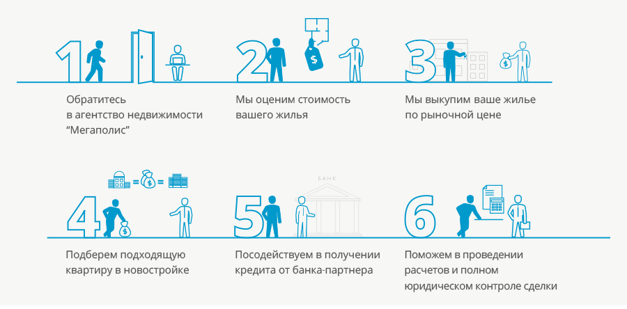 Стоит отметить, что, несмотря на популярность в западных странах, для белорусского рынка недвижимости программа trade-in уникальна, поскольку подразумевает под собой полноценный выкуп недвижимости клиента застройщиком. Но при желании, вы можете отдать квартиру на реализацию агентству недвижимости «Мегаполис».