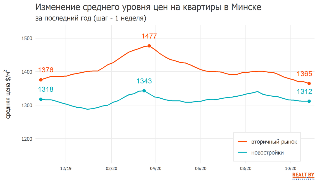 За неделю, с 19 по 26 октября 2020 года, аналитическим центром Realt.by были отмечены следующие изменения на рынке жилья города Минска: