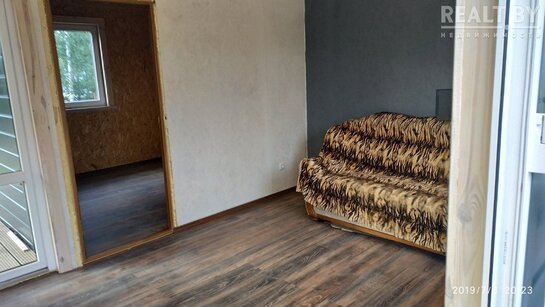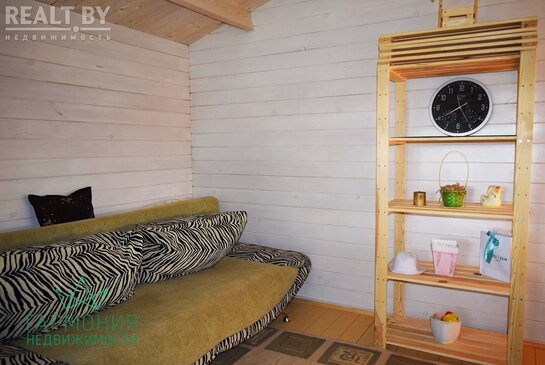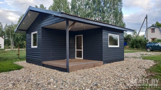 Этот новый дом располагается в Могилевской области, в поселке Буйничи (194 километра от МКАД), на участке в 15 соток. В доме есть электричество, вода и местная канализация, к участку подведен газ. Постройка площадью 40 «квадратов» (почти дворец по сравнению с вышеупомянутыми объектами) полностью обставлена мебелью. Для создания теплой семейной атмосферы тут есть камин и сауна. Дом полностью подходит для круглогодичного проживания.