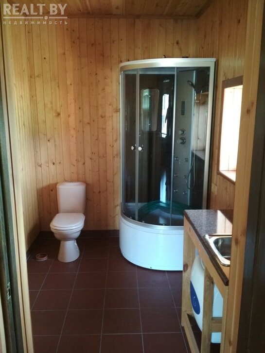 Постройку, к слову, можно использовать не только летом, но и круглый год. В пешей доступности — инфраструктура небольшого городка (магазины, транспорт, поликлиника), а в самом доме есть центральный водопровод и канализация.