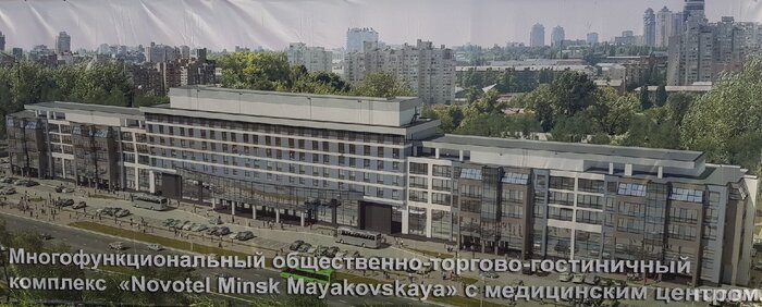 Известно, что еще в 2013-м в начале ул. Маяковского по нечетной стороне начали строить многофункциональный общественно-торгово-гостиничный комплекс Novotel Minsk Mayakovskaya. Заказчиком выступала компания Алексея Ваганова. Ввести объект намечалось через два года. Здесь планировалась гостиница французского оператора Accor, бизнес-центр, торговые, физкультурно-оздоровительные и другие объекты. Позже застройщик озвучил намерения открыть в комплексе также медцентр. Однако объект превратился в долгострой. Что сейчас?