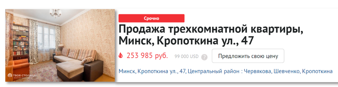 Предложение на столичном рынке недвижимости сейчас более чем достаточное — можно без проблем выбрать квартиру под любой запрос, цены постепенно снижаются, а собственники чаще идут на торг. Наибольший дисконт ждет покупателей квартир, готовых к проживанию и квартир от 2010 года постройки со стандартной строительной отделкой. Поэтому, выбрав квартиру по вкусу и финансовым возможностям, не стесняйтесь торговаться. На сайте www.t-s.by собраны все предложения с торгом, выбирайте квартиру и предлагайте свою цену.