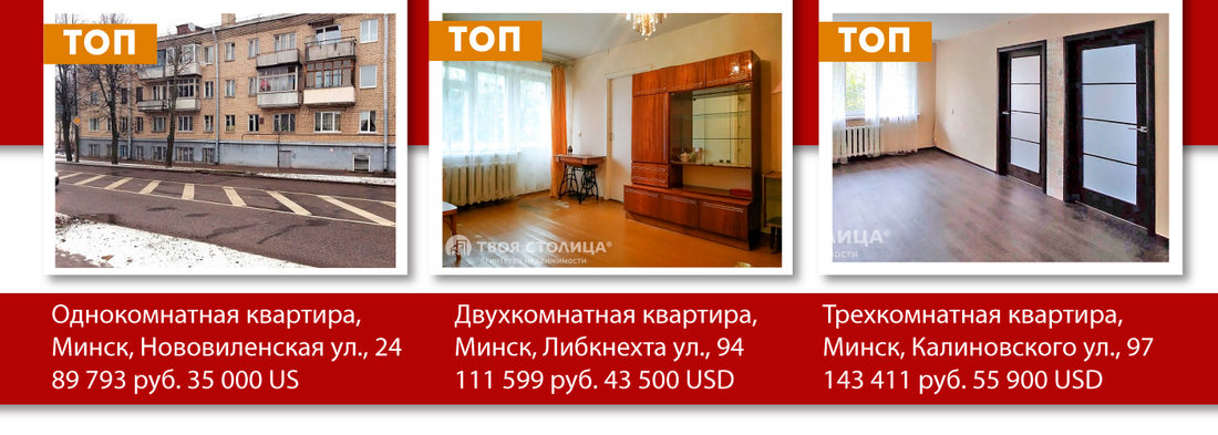 К слову, средняя цена квадратного метра квартир стандартных потребительских качеств по итогам реальных сделок декабря 2020 составила 1240 USD — для однокомнатных, 1153USD — для двухкомнатных, и 1110 USD — для трехкомнатных квартир. А самые доступные по цене объекты недвижимости Минска можно посмотреть в разделе «ТОП-20 дешевых квартир».