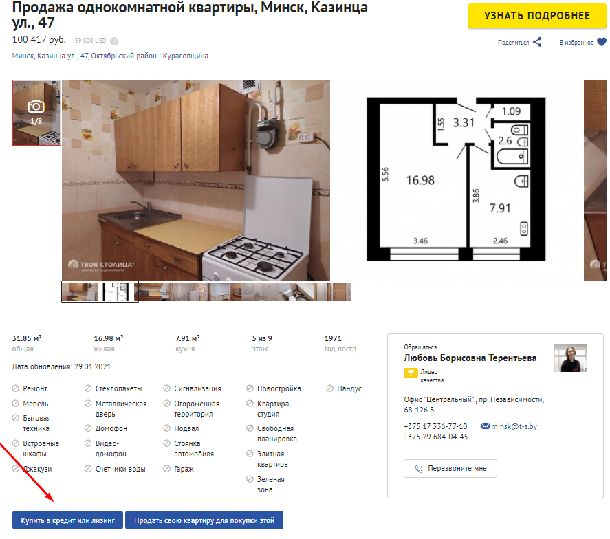 Расчет суммы кредита и ежемесячных выплат строго индивидуален и зависит от многих нюансов — уровня заработной платы или наличия других доходов, кредитной истории, наличия карт рассрочки и т. д. Специалисты нашей компании делают индивидуальные расчеты под каждый объект. Отметим, что средняя сумма кредитных средств привлеченных для покупки жилья на вторичном рынке специалистами нашей компании начиная с момента возобновления выдачи кредитов составила порядка 40 000 BYN, в новостройках- порядка 83 000 BYN.