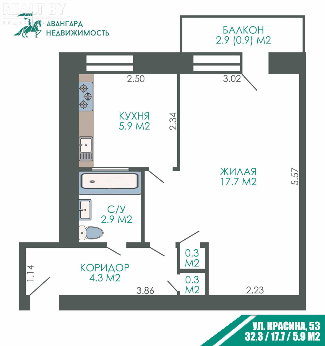«Хрущевка» 1961 года постройки находится в Заводском районе (микрорайон Сосны), расположена на 3-м этаже 3-этажного кирпичного жилого дома. Общая площадь квартиры составляет 32,3 кв. м, жилая — 17,7 кв. м, кухня — 5,9 кв.м. Квартира находится в хорошем состоянии.