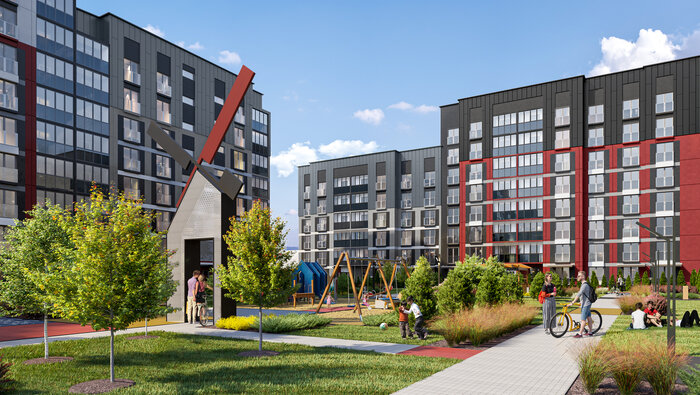 Новостройки возводят в квартале «Центральный парк» рядом с пересечением улицы Михаила Миля и Небесной. Там появятся четыре дома разной высотности — от 6 до 10 этажей.