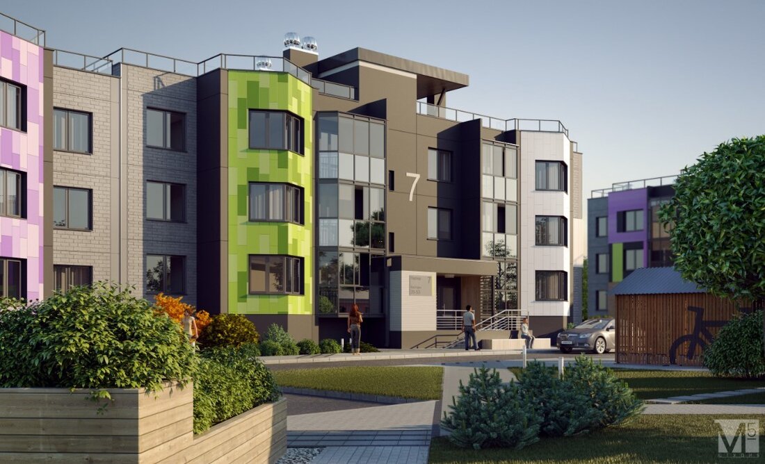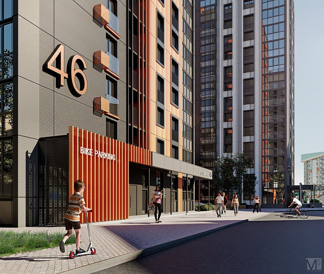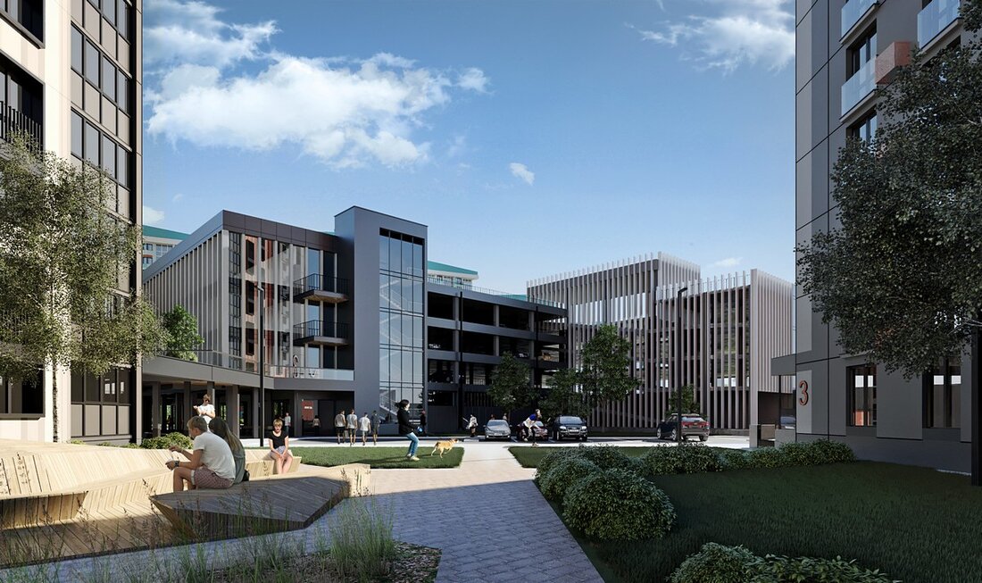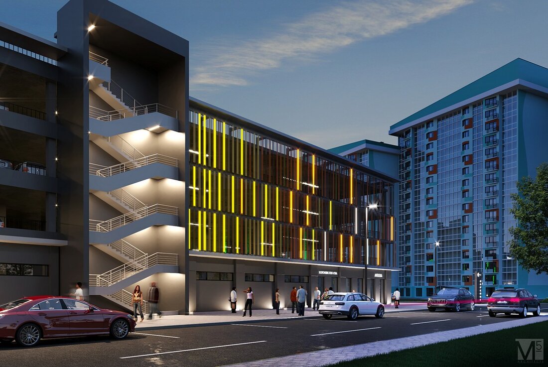 Комплекс представляет собой яркий архитектурный ансамбль из четырех 16-этажных жилых домов и торговой галереи с многоуровневым наземным паркингом. На первом уровне многофункционального объекта появится супермаркет одной из крупных торговых сетей, магазины и кафе, во дворах современные детские и спортивные площадки, зоны отдыха, велопарковки.