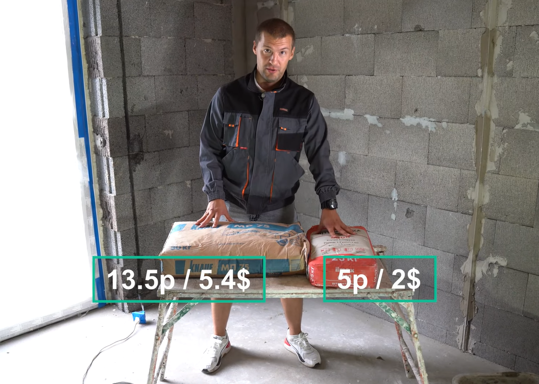 Если ориентироваться на стоимость одинакового объема штукатурки в мешках, то выгоднее выглядит цементная — она стоит 5 рублей против 13,5 рублей за гипсовую. Но по окончании штукатурных работ разница была не столь очевидна.