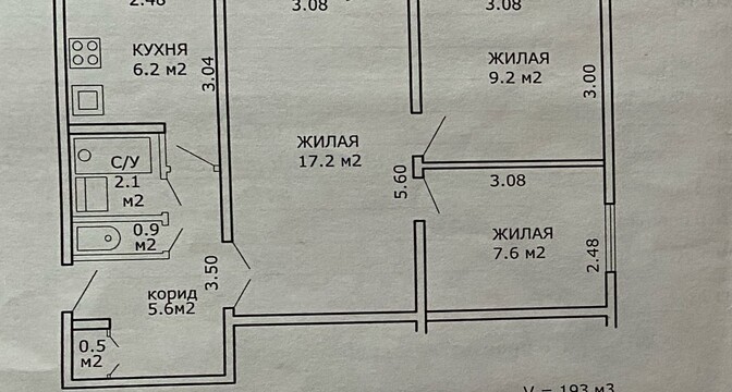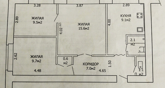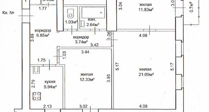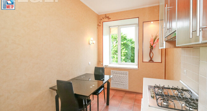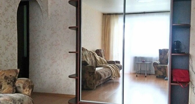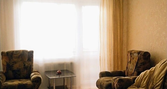 Трехкомнатная квартира продается в четырехэтажной «сталинке» по адресу улица Карвата, 34 на четвертом этаже. Общая площадь квартиры — 66 квадратных метров (жилая — 45, кухня — 6). Дом кирпичный, построен в 1951 году. Капитальный ремонт проведен 20 лет назад.