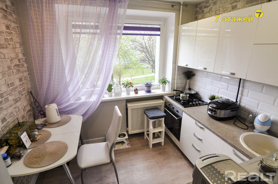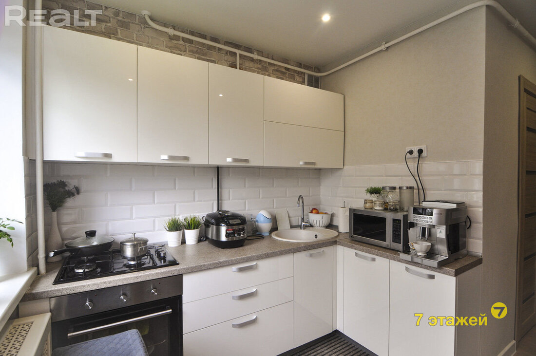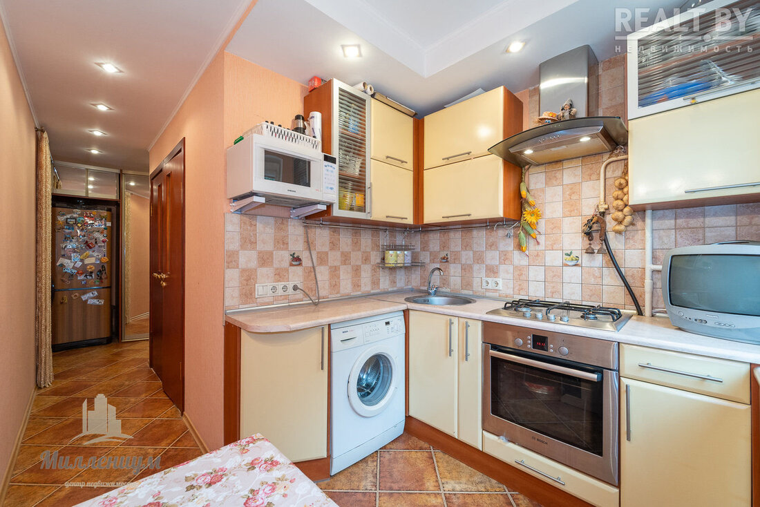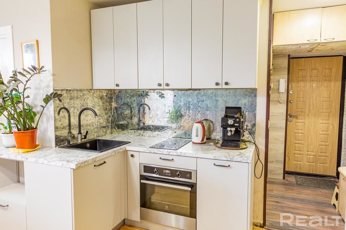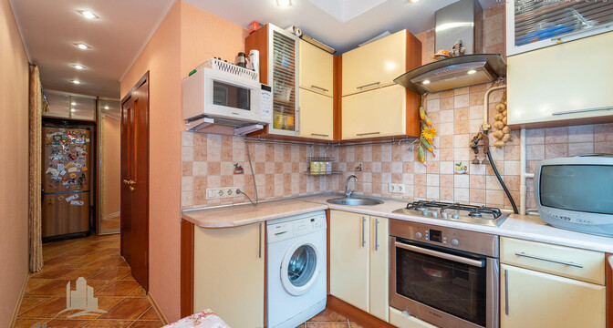 Новым владельцам при покупке квартиры остаются два вместительных шкафа-купе, встроенная кухня и техника, посудомоечная машина.