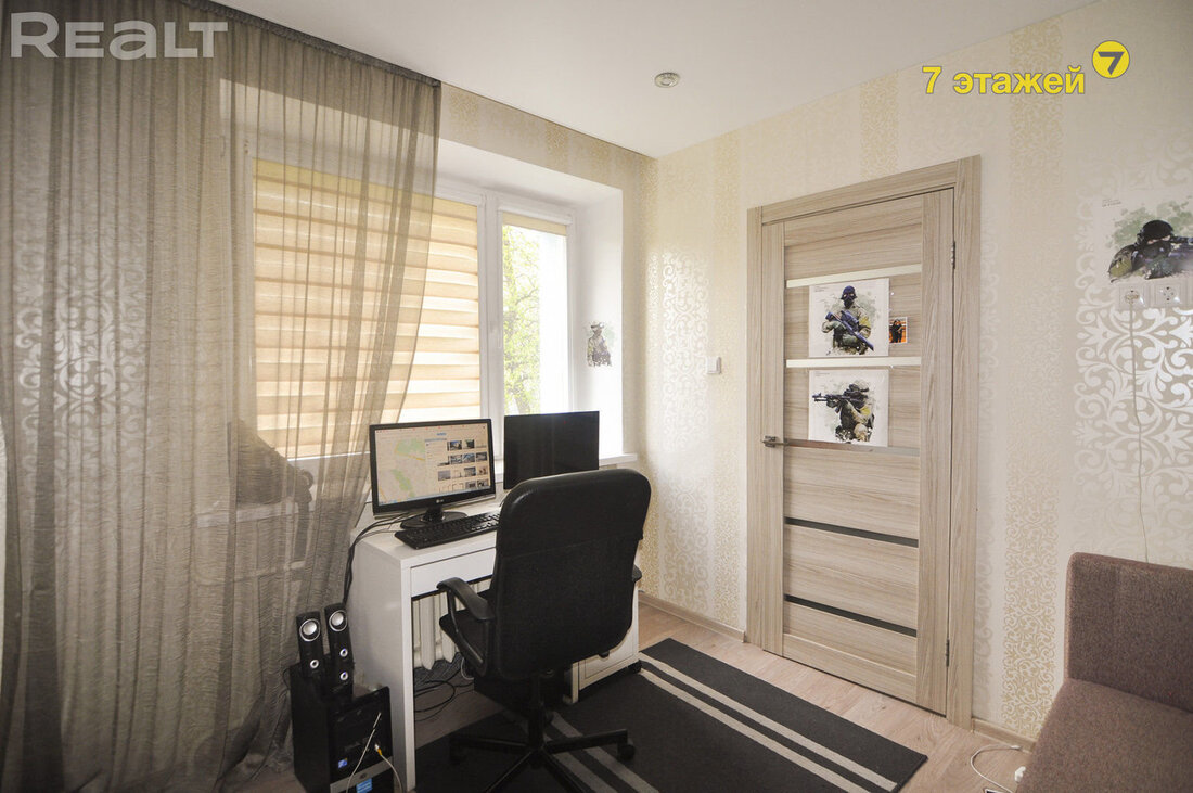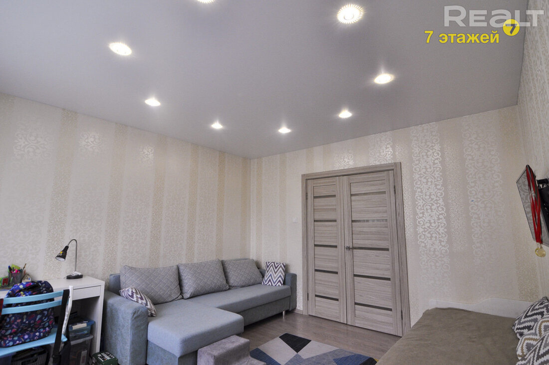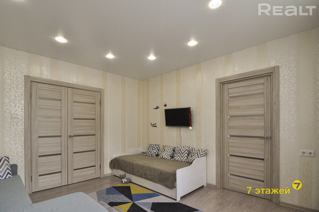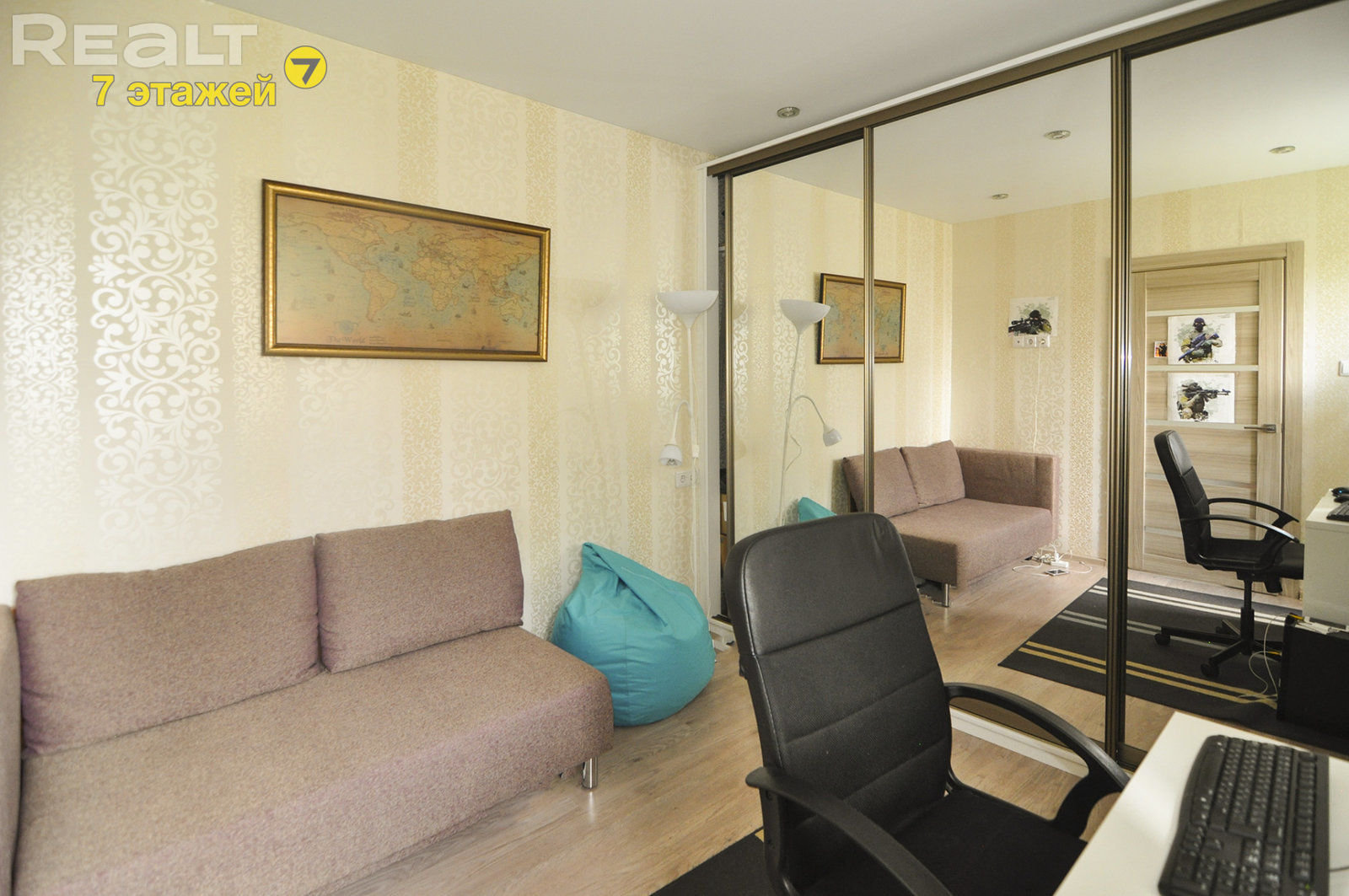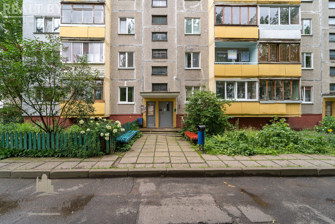 Двор возле дома благоустроен, много зелени. Хороша развита инфраструктура района: торговый центр, магазины, почта, аптеки, тренажерный зал, отделения банков и другое. Поблизости расположена набережная реки Свислочь и Лошицкий парк.