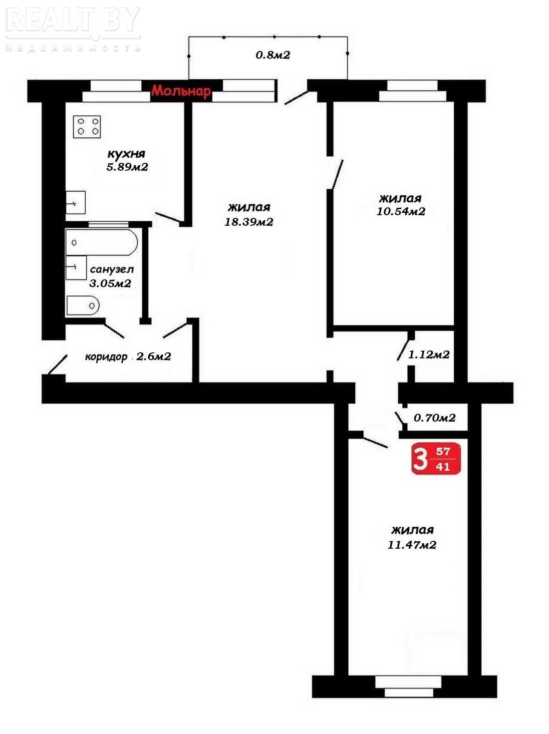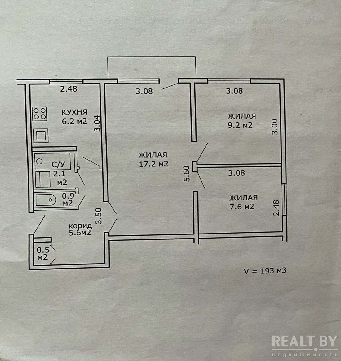 «Трешка» продается в доме по адресу улица Уборевича, 122. Площадь квартиры составляет 50 м² (жилая — 34, кухня — 6). Она на втором этаже. Дом пятиэтажный, панельный, построен в 1969 году.