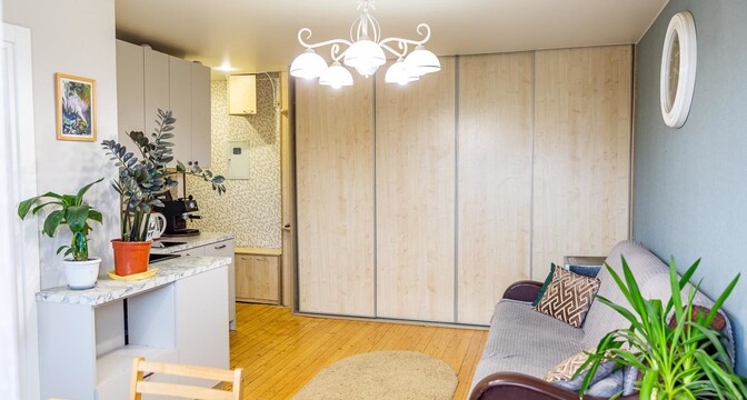 — В квартире просторная кухня-гостиная и две отдельные комнаты. Установлены стеклопакеты, во всей квартире натяжные потолки, заменена вся электрика. Совмещенный санузел, в котором был произведен полный ремонт: современная плитка, заменены все трубы, установлена новая сантехника, инсталляция и смесители Grohe, — пишут в объявлении.