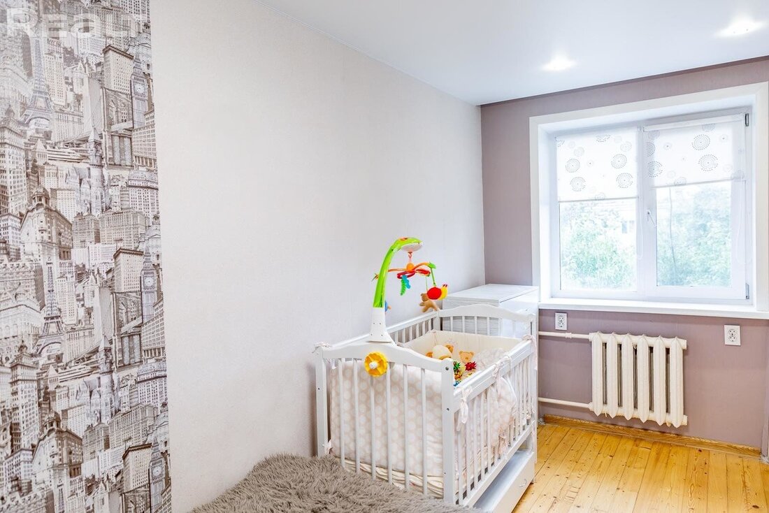 Трехкомнатная квартира площадью 50 «квадратов» (жилая — 34, кухня — 6) продается в доме по адресу улица Надеждинская, 11/2. Она находится на пятом этаже панельной пятиэтажки, построенной в 1969 году. Год капремотна — 2016. Все коммуникации были заменены.
