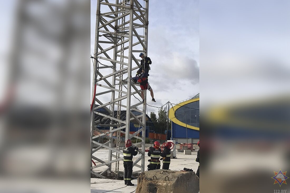 — Начальник пожарной аварийно-спасательной части № 6 Владислав Семашкевич и командир отделения Евгений Залевский организовывали страховочную и спусковую станции, с которых заместитель начальника Центрального районного отдела Сергей Вечер в сопровождении при помощи спасательной косынки спустил его на землю. Во время спуска страховку осуществлял командир отделения пожарной аварийно-спасательной части № 12 Александр Адерихо, а внизу у основания крана пострадавшего принимали командир отделения пожарной аварийно-спасательной части № 6 Вячеслав Моржуев и старший пожарный Дмитрий Литвиненко, — сообщает МЧС.